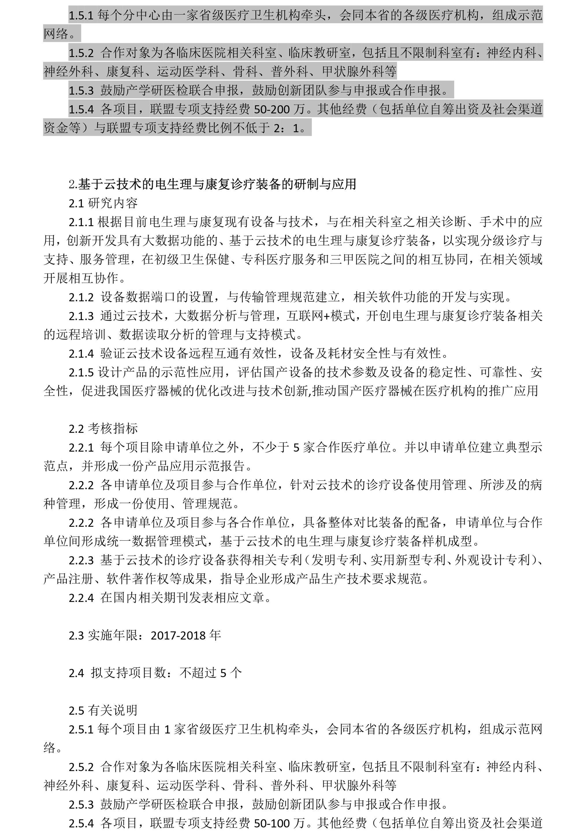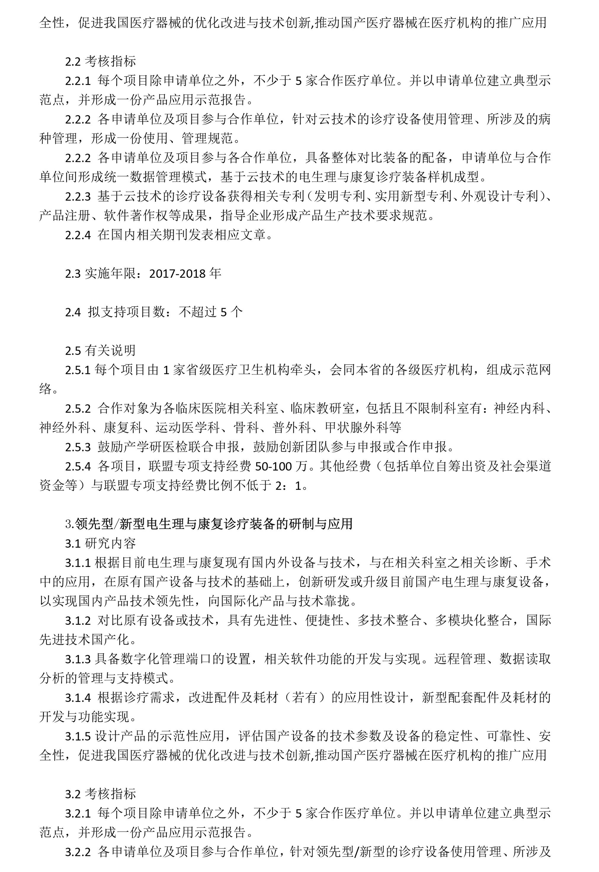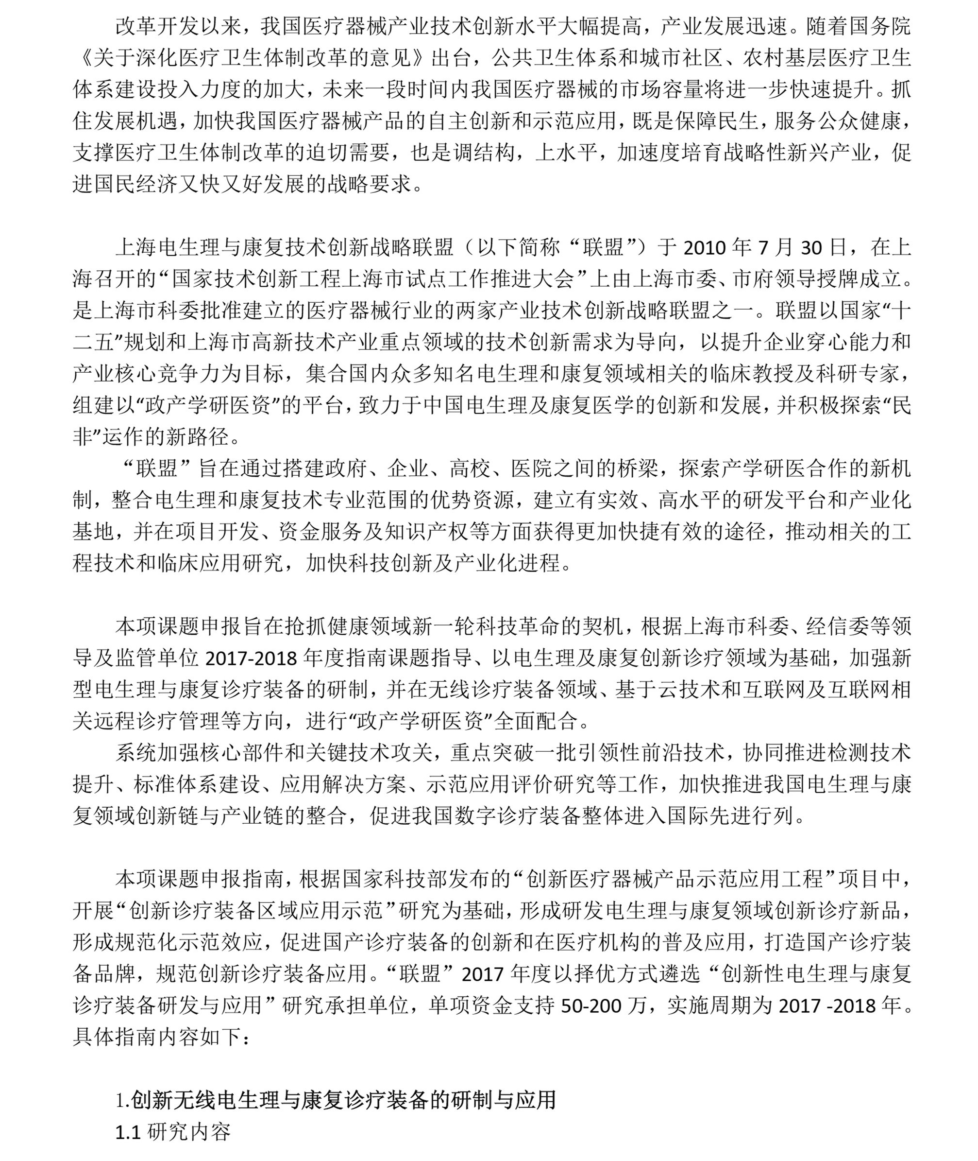 上海电生理与康复技术创新战略联盟2017年申报项目指南