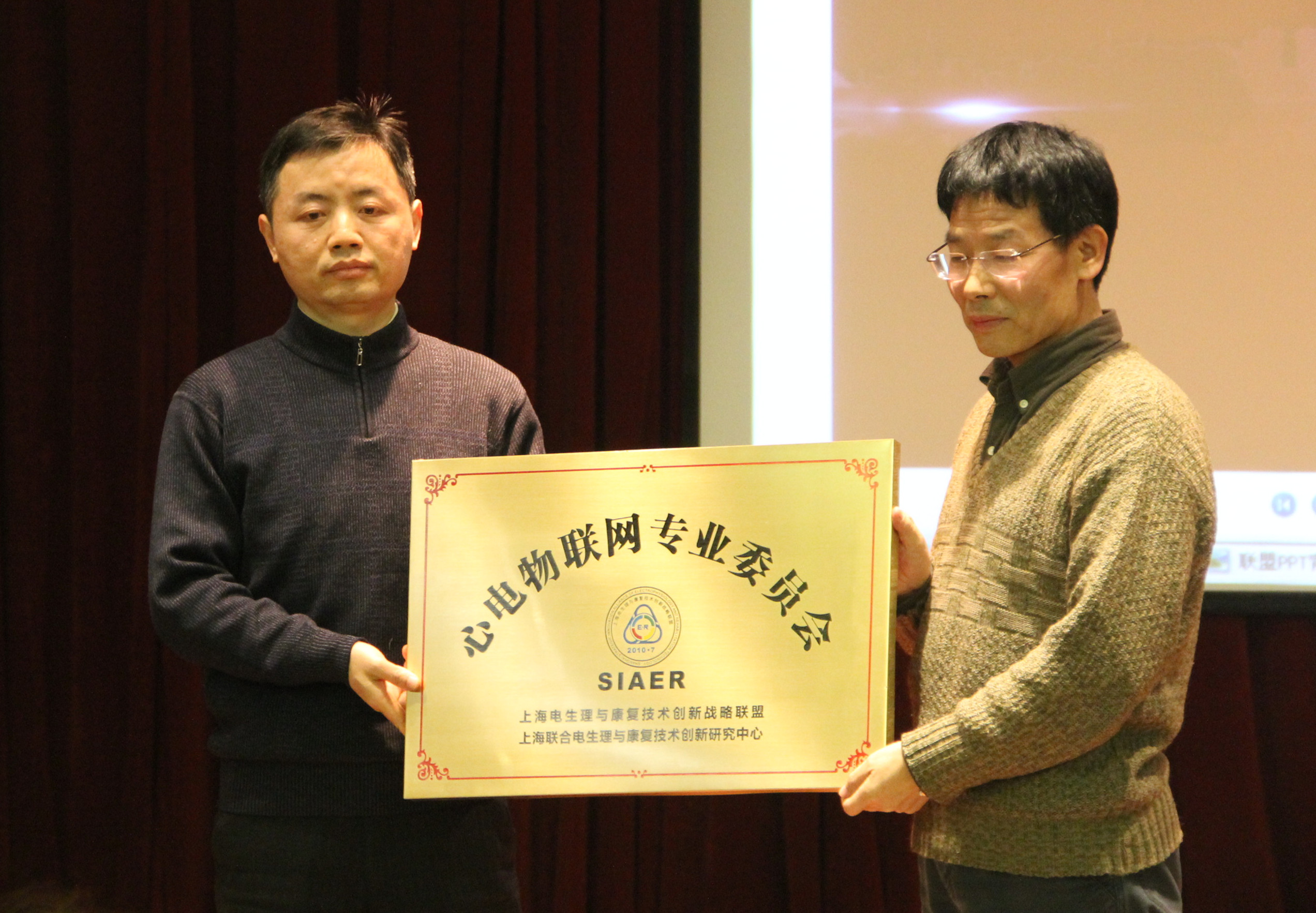 2016年1月9日上午,在徐汇区中山西路1525号上海技贸大厦宾馆三楼举行了上海电生理与康复技术创新战略联盟学术年会,并宣布成立上海电生理与康复技术创新战略联盟—心电物联网专委会(以下简称心电物联网专委会)和医养结合专委会。这是继该联盟2015年1月宣布成立康复机器人、手功能康复和神经检测专委会后的新增的专委会。学术年会上由上海市科委领导向新设立的专委会授牌,并为专委会主任、副主任等颁发了聘书。上海交通大学老年健康信息技术研究所常务副所长郑世宝教授代表心电物联网专委会,向大会做了专委会介绍和成立背景的报告。