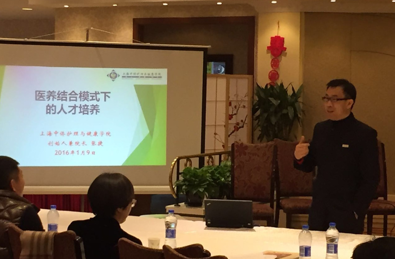上海中侨护理与健康学院的张捷院长主持医养结合学术论坛